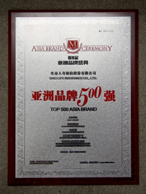 2014年9月9日, 亞洲品牌第一榜——“2014亞洲品牌500強(qiáng)排行榜”在香港隆重揭曉,生命人壽榮獲“亞洲品牌500強(qiáng)”、“亞洲十大最具影響力品牌獎”兩項殊榮。生命人壽黨委書記黃守巖受邀出席頒獎典禮。