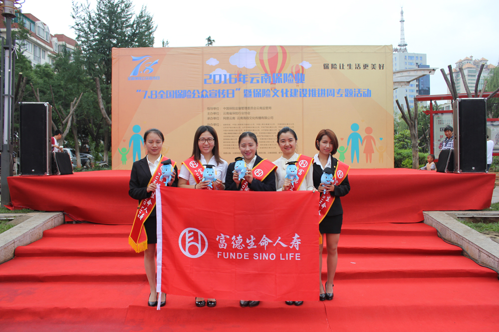 在湖南,湖南分公司組織員工統(tǒng)一服裝,高舉司旗,火紅色的富德生命“跑團(tuán)”在陽光下?lián)]灑汗水,雄姿英發(fā),為市民普及保險知識樂此不疲、不辭辛勞。