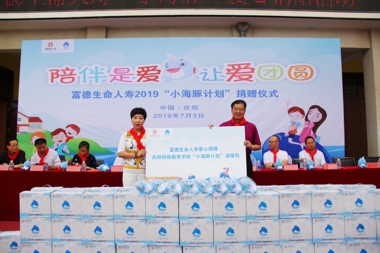 7月3日,甘肅分公司在慶陽(yáng)市開(kāi)展“小海豚計(jì)劃”公益捐贈(zèng)活動(dòng)。分公司副總經(jīng)理王蕾攜小海豚志愿者與全體師生近400人參加了本次活動(dòng)?;顒?dòng)為慶陽(yáng)特殊教育學(xué)校孩子們捐贈(zèng)了90套“小海豚溫暖包”和總保額549萬(wàn)元的“小海豚計(jì)劃”專(zhuān)屬保障,并開(kāi)展了《積極自信》專(zhuān)題心理健康講座。