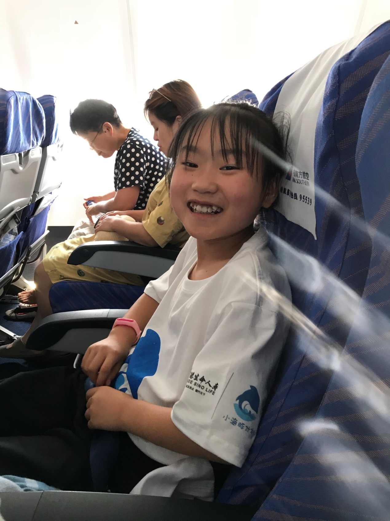 經(jīng)過漫長(zhǎng)的等待,終于可以登機(jī)啦,孩子們第一次坐飛機(jī),興奮無比,扒著窗戶不停地向外望,還時(shí)不時(shí)和旁邊的小朋友討論著白云上有沒有住著神仙,一路上充滿歡聲笑語。