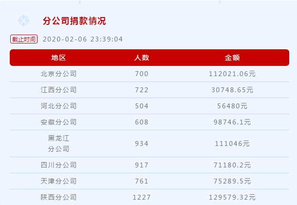 疫害無情,富德有愛。為支持新冠肺炎疫情防控與救治,富德生命人壽多家分公司發(fā)起了公益捐款活動(dòng),6373名員工紛紛伸出援手。截至2月6日,捐款總額已超過685090.83元。相關(guān)分公司的捐款情況如下: